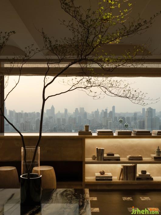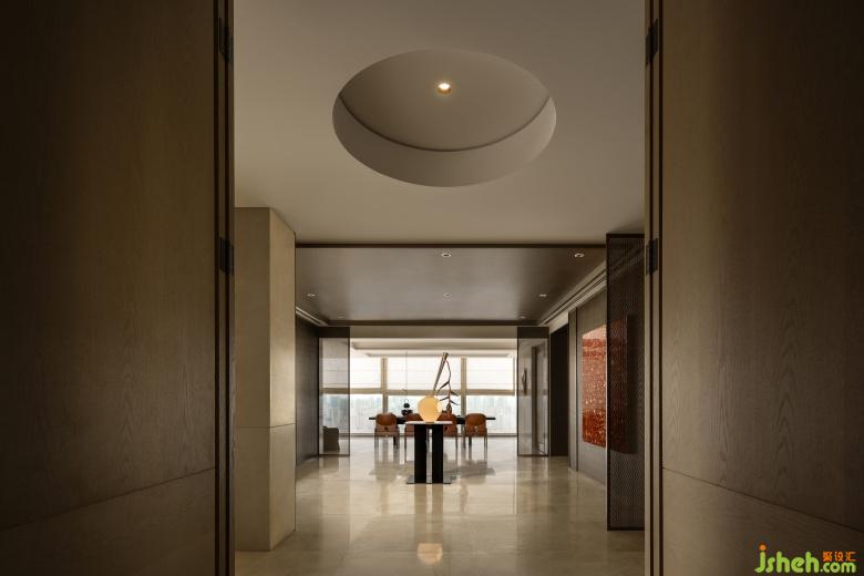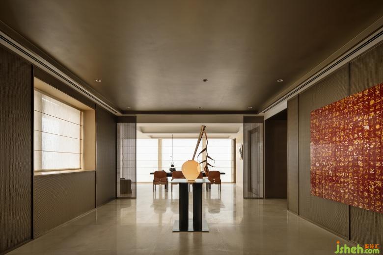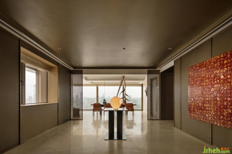 面朝长江,彼岸建筑光影闪烁,总能让时间不知觉地延长。生活的从容在杯盏间流转,餐桌上的红色大漆盘子与金色餐盘,武汉样板间设计以卷轴为灵感的吊灯,透过当代设计语言,不断赋予空间摩登与复古的气质。此情此景,描摹出了居住日常的诗意。