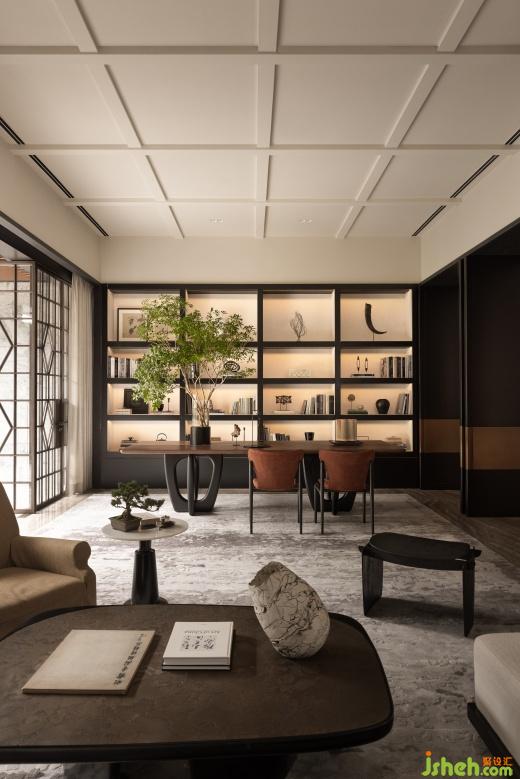 会所设计会客厅的设想则更趋于旧时的书斋,使言谈浸润温馨,又承载一种独属的归属感。每个区域之间的可开合设计,使空间的关系变得灵活多变。我们希望每位来客能在此一隅窥见未来家的轮廓:一方书房、一隅酒廊、一间影厅,启迪生活的无穷可能,触发对自我与生活本质的崭新认知。