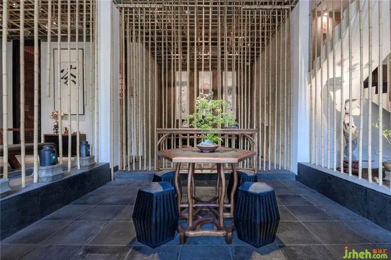 “篽箖”二字,冷僻少见,却内涵深远。设计师取“竹子做的禁苑”之意,重私密自处与自然相融,深信在这一方静地,可抛去繁冗,安放身心,实现文化深处和生活之上的价值。知其名而品其意,端坐草堂,享竹之乐,会油然而生“我种南窗竹,戢戢已抽萌。坐获幽林赏,端居无俗情。”的意境。由境化心,便自然勃发一种文仕的清风傲骨惠州室内设计。