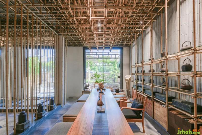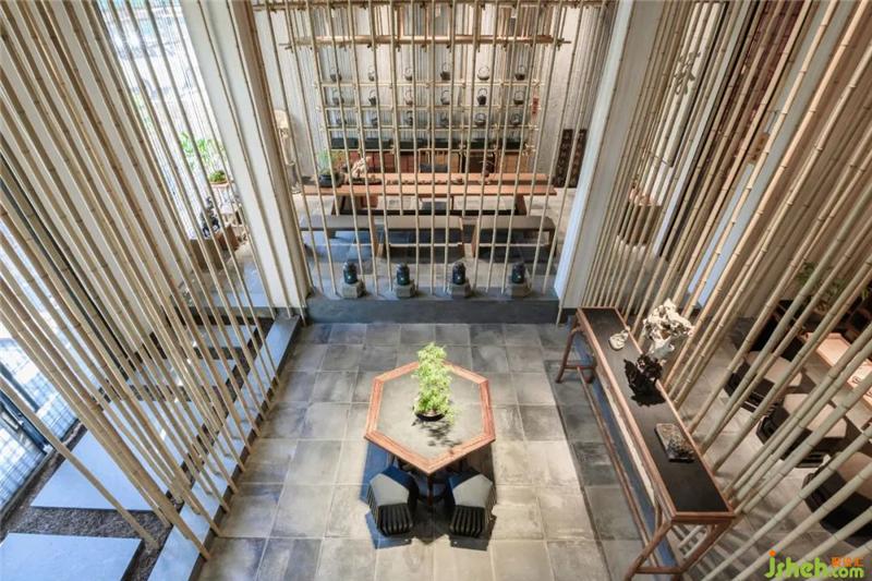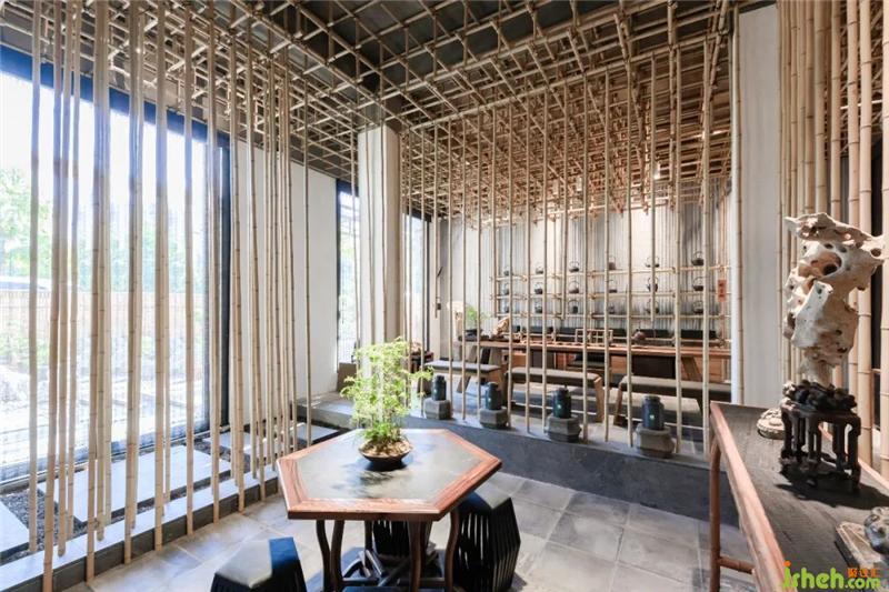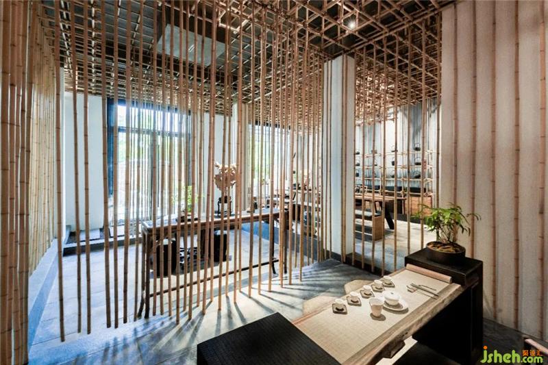 篽箖草堂,取繁华都市一方,却又隐匿于闹市之中。在庭院围合、空间铺陈间,丛竹点翠、山水相映中,宋韵雅风,以空灵之形、深邃之态,跃然一竹一藤、一山一水之上。