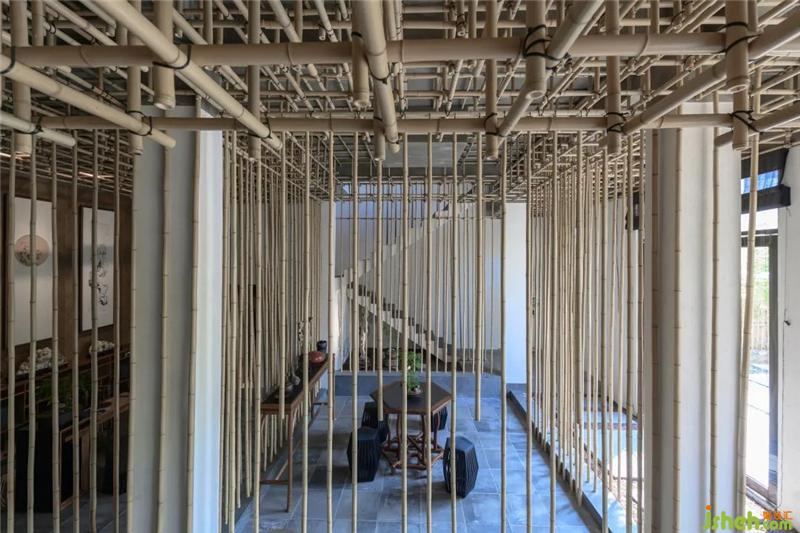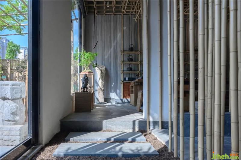 竹篁掩映门轻启,风回小院庭芜绿。入得庭院,丁步环设,与细石软硬相济、虚实相和,化为“小桥流水”。院落之内,丘壑相连、山水环绕,奇松怪石、淡烟细水,与紫藤花架隔空对话,相映成趣。院落一隅,狮子林下,竹影横斜,融于整体,却又自成一景惠州室内设计。