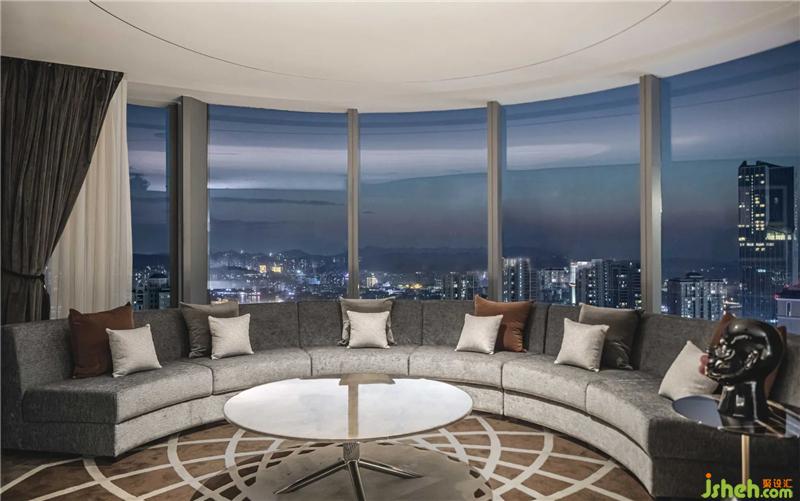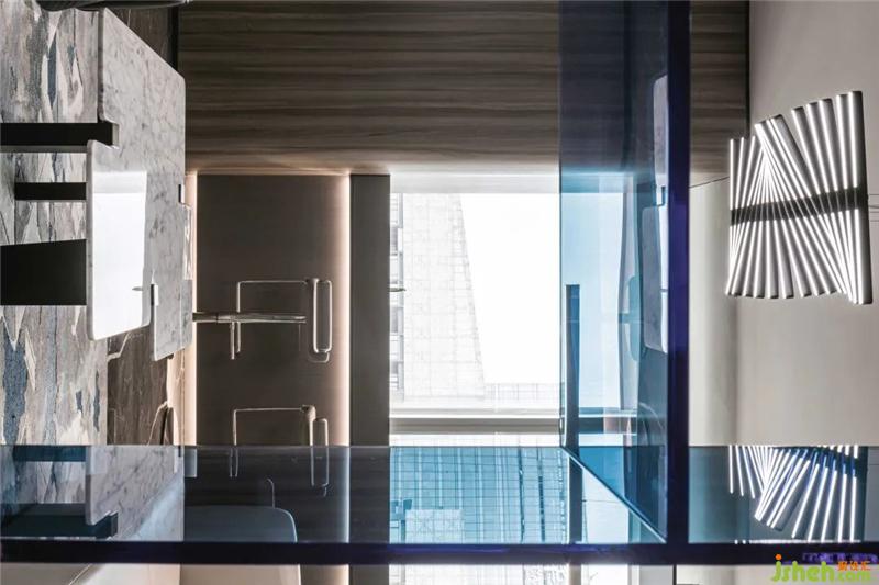 当夜幕降临,明月升空,满天繁星就像宝石一样嵌在夜幕上;以“星辰”为意象打造的办公环境,讲究以材质的对比和空间符号的表达彰:显空间的灵动感和通透感。