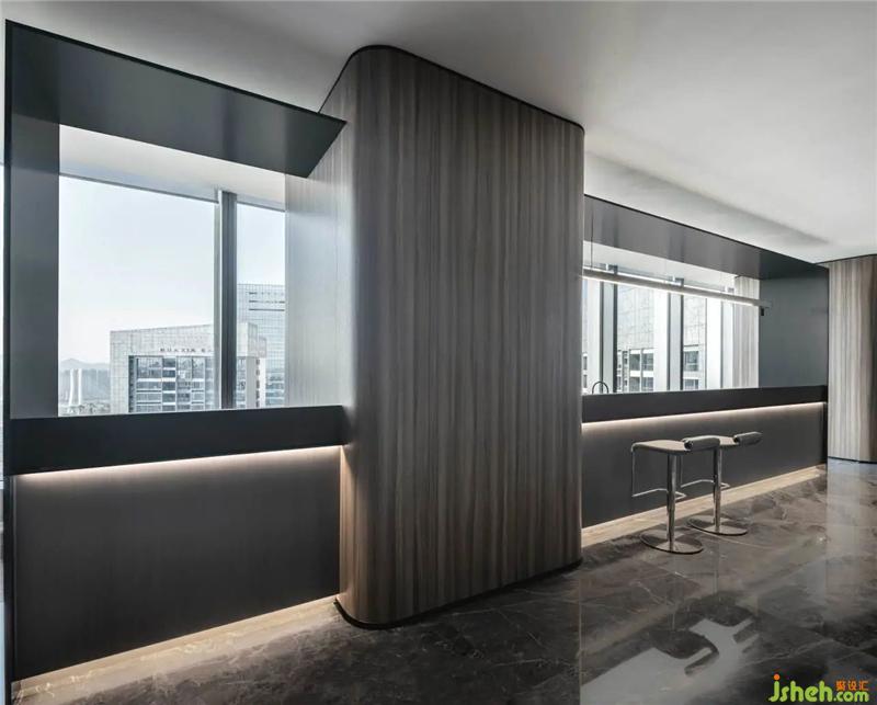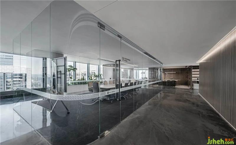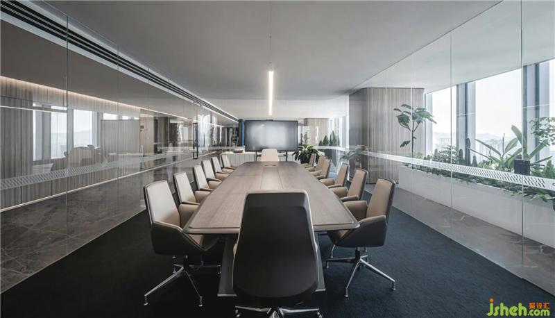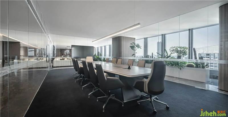 为了满足办公空间灵活多变的需求,设计师将休闲区域和会议区域进行有机设计,通过玻璃隔断、立柱的巧妙利用,打破了传统办公空间的沉闷之感,在充分满足采光需求的同时,也让每个功能分区在起承转合处轻松过渡,整体平面规划以“回形”走廊为动线的体块式空间布局,看似彼此独立,实则彼此联系惠州办公空间设计。
