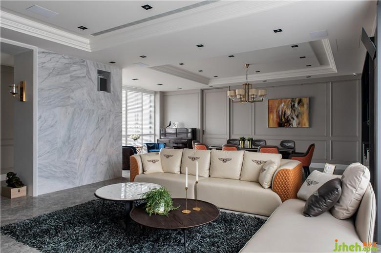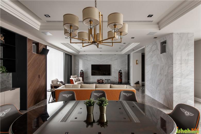 屋主长年经商,希望新家离尘不离城且能保有安全隐私性,诉求公共空间的尺度和质感能满足他经常款待宾客的需求;加上三代同堂的家庭组成,生活舒适性也是本次设计的重要考量。设计团队除了运用开阔而通透的形式重塑空间,增加一楼公领域腹地、放大视觉感之外,亦将梁柱结构或转换为场域间的隐形界限,或延伸设计出实用柜体;同时仔细忖度材质与颜色的配置,且以优雅线条建构主要立面,搭配玄关处特别订制的家徽图腾地坪,以及最大限度地引进室外景观,在在皆呼应「奢华而宁静的家」之设计核心。
