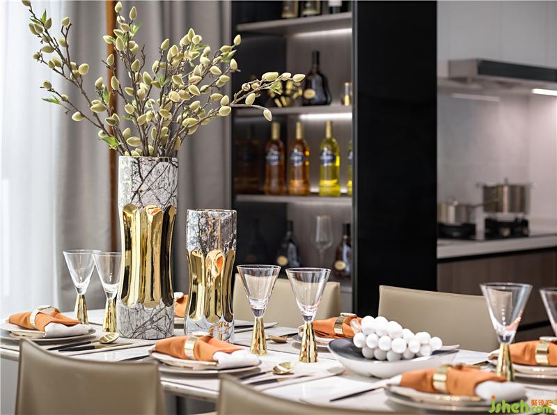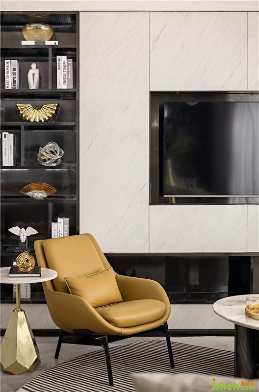 雅士白大理石温润而遒劲,隐约可见的自然肌理,化作简约凝练的饰面形塑空间意境;橙色的局部点缀蕴藏着无限的生机,如同乐章的旋律,在整个空间中变奏交响,悦耳动听。