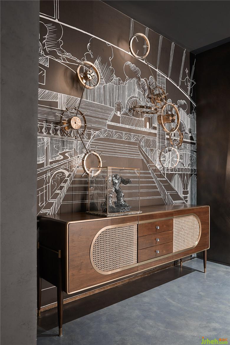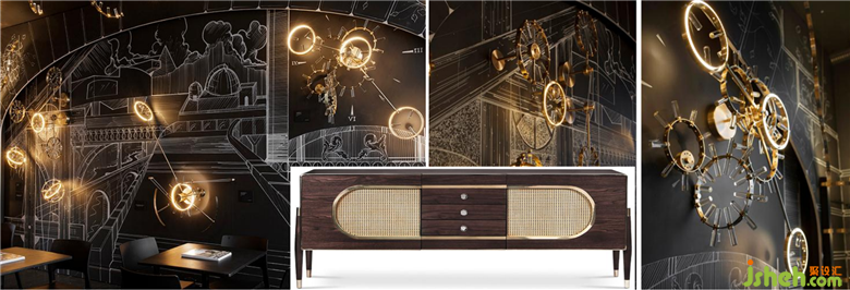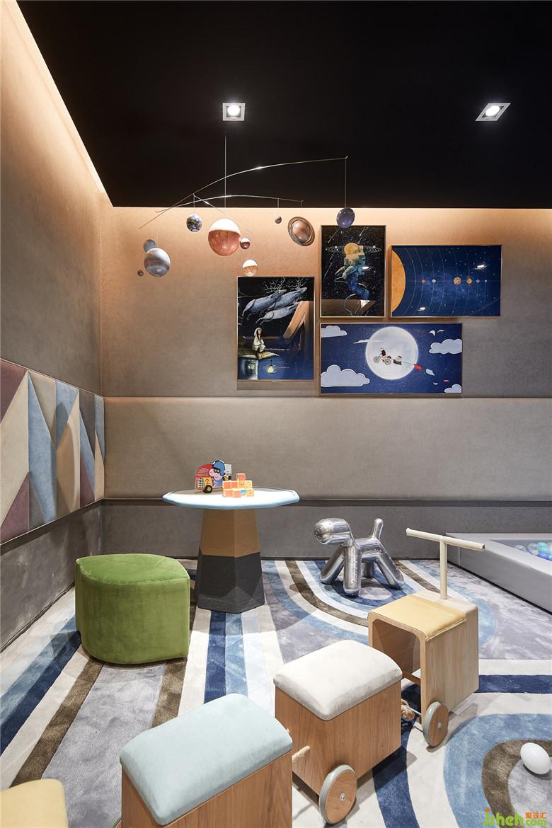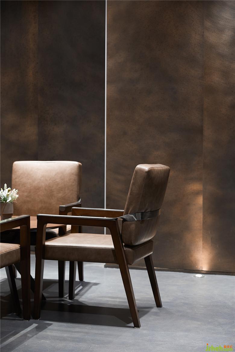 咖啡皮革椅的摆设,展现低调内敛的复古风味,星光映衬调动着观者的感官。漫步其间,设计师将空间流泻出来的温暖灯光,以及璀璨星空一一入画。