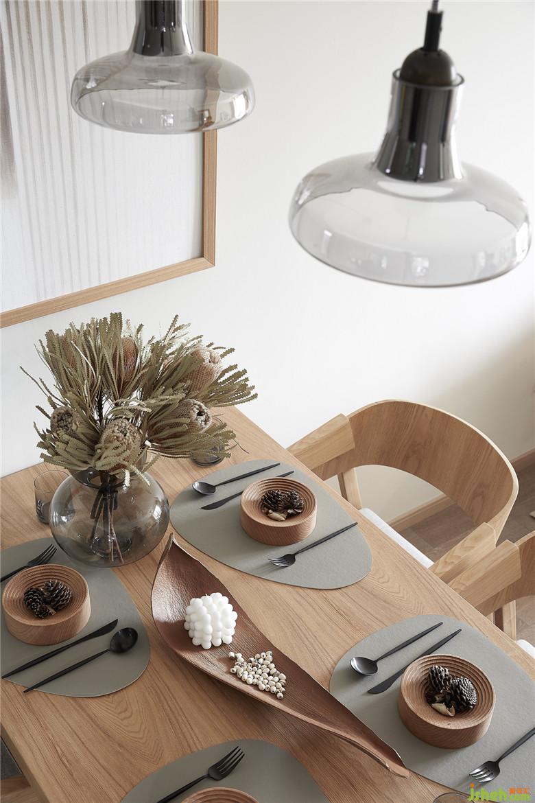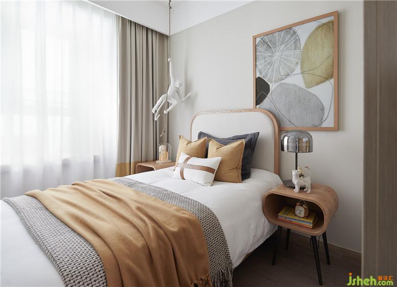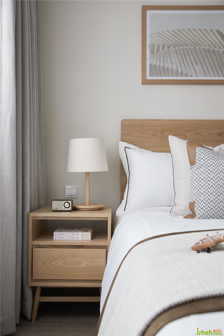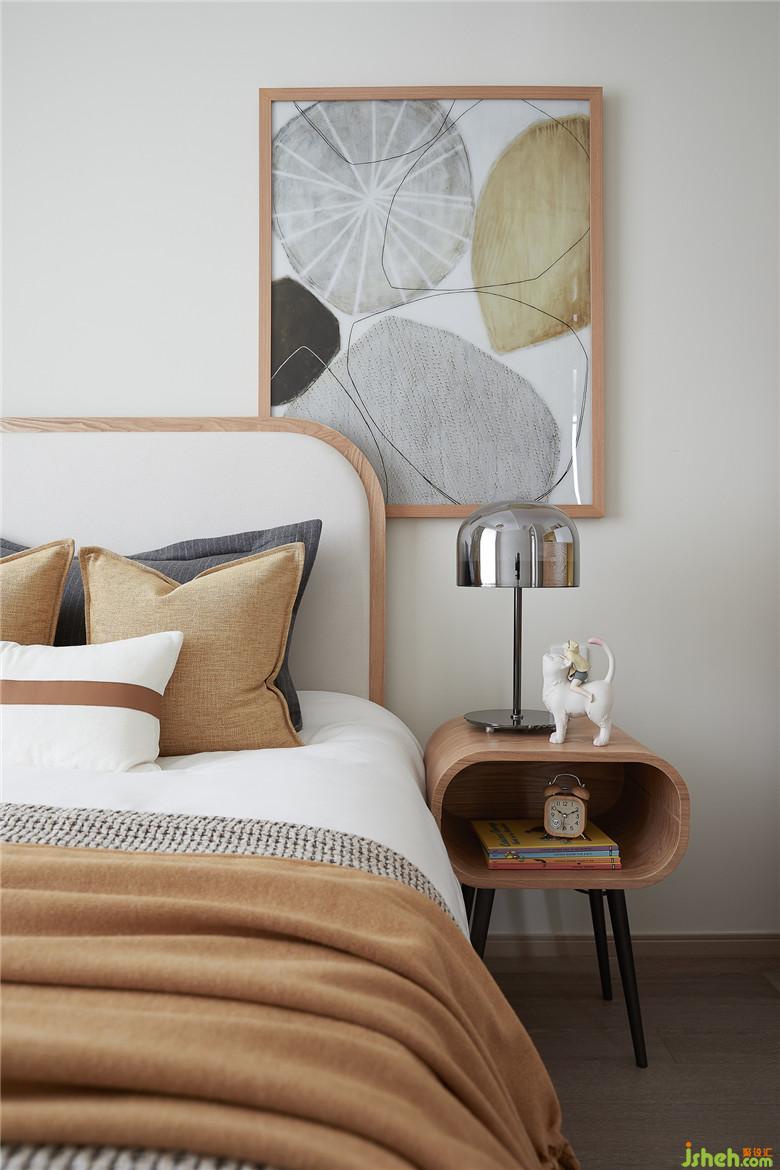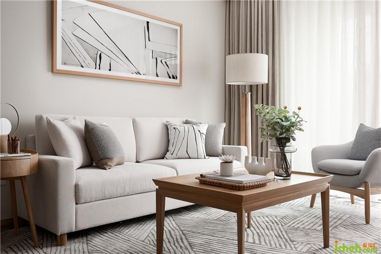 整个空间中涵容着现代气息的简约静宁,又藏匿着自在的悠闲气息。暖白色沙发、原木矮几、几何地毯的陈列,藏纳在脉络清晰的纹理之中,棉麻白的清雅恬淡的气息自在流淌,当阳光倾泻而下,时光缓缓流淌,细品一首生活静谧之诗。