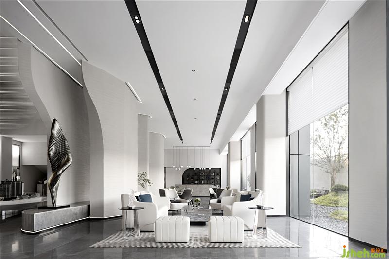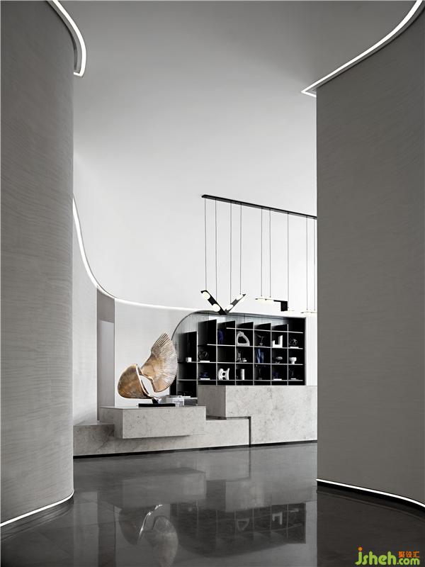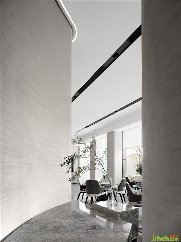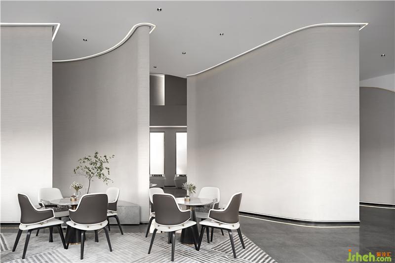 装修设计充分运用了大自然的力量和线条,以形体线条的变幻产生视觉的感官效应。人文的底色、韵味与张力弥漫于空间每一个角落,形成了一个当代艺术和人文风尚兼具的售楼处空间。