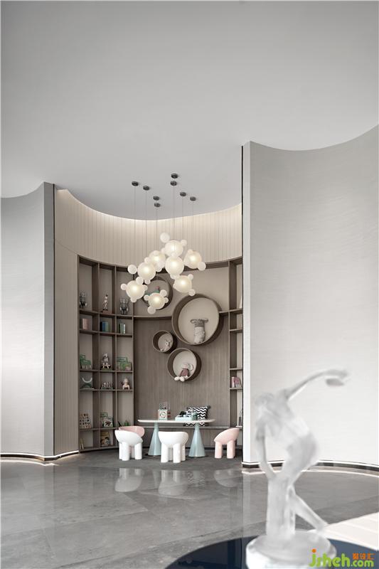 儿童空间结合了空间墙体的圆润弧度,形成了一个独立的乐园,犹如带着培育生命的姿态,创造出梦幻纯真的艺术殿堂,是随光奔走的自由,亦是生命绽放的张扬。