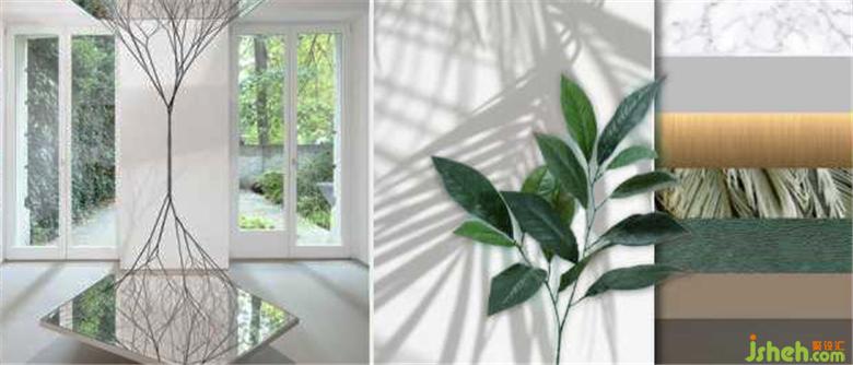 绿意化为一片森林,承载了生命力,也带给我们一个有生机与活力的空间。秋敛冬藏,深灰色的沉稳静默,搭配绿色的自然淡泊,简洁的摆件,呼应理石肌理,在淡泊中增添了一份沉淀的美感。