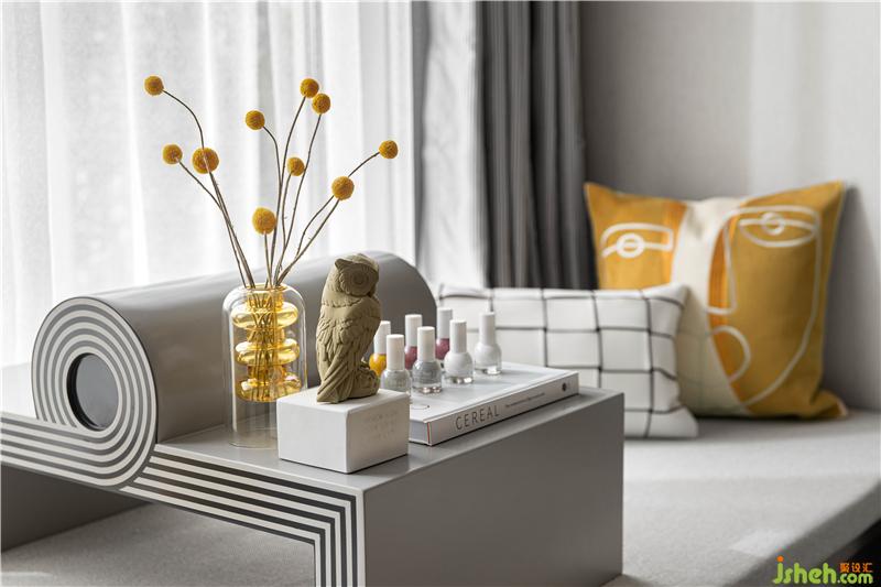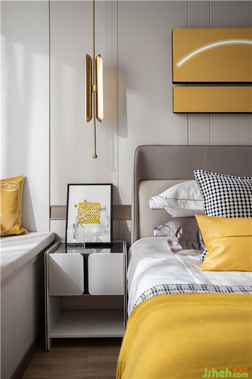 单纯的色彩才能唤起最强烈的心灵感受力。在主卧空间,选取明黄色点缀,极具线条性艺术感的背景墙,时尚简洁而不简单的都市优雅的气息弥漫。体现居室主人精致不俗的审美品位,凝构空间优雅浪漫的生活情调。
