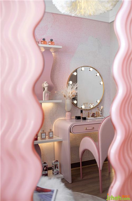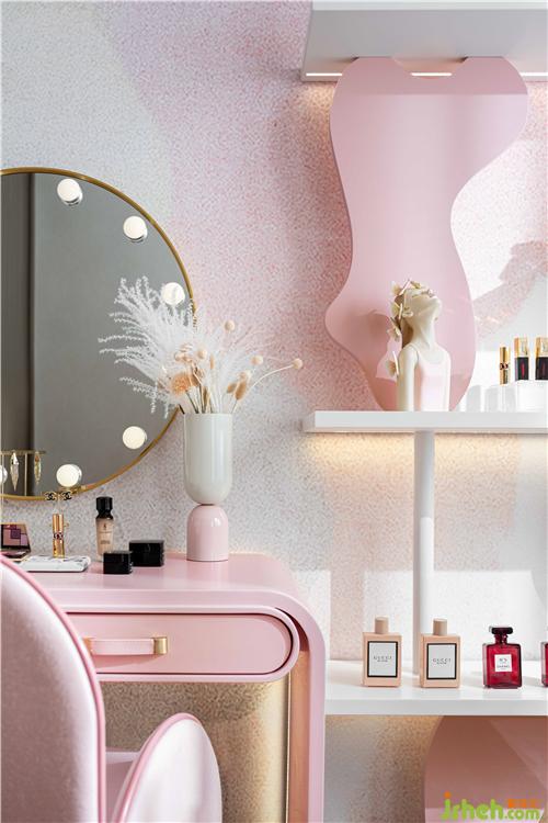 既有人间烟火的生活气息,也要点燃感官的艺术氛围。设计师将今年最红的直播元素引入空间,装饰架上大牌的香水,甘醇下氤氲着一缕花香,萦绕在空气当中,沁人心脾。取悦自我、享受生活,这是变美的后台,也是展示真我的舞台。
