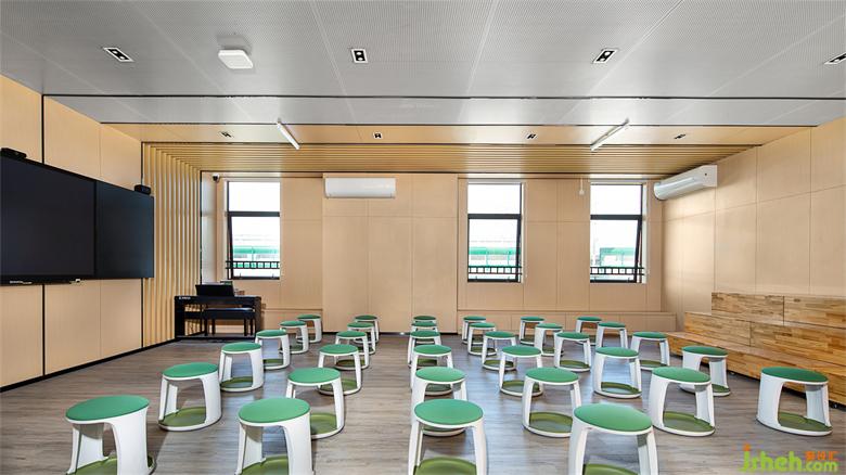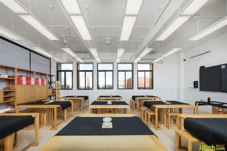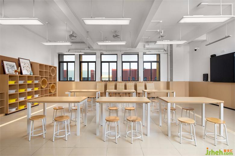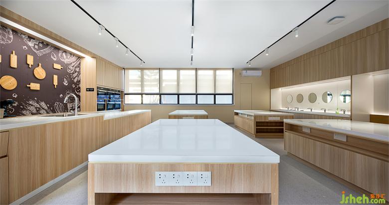 学校建设设计整体呈现出的是简约的造型与朴素的色彩,与当下课程形成很强的互动性和适应力。烘焙室科学合理进行空间的规划,采用开放式流理台,极佳的采光与视野,方便教学实操与师生互动,让烘焙课程变得更加自由开放。