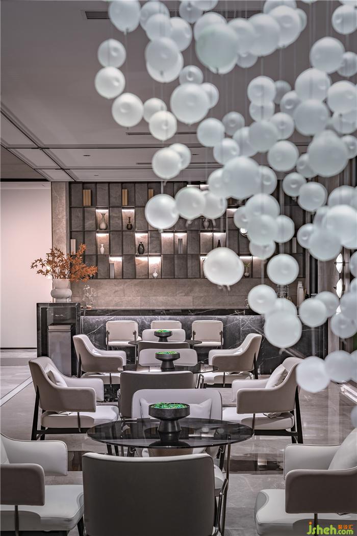留白艺术与深色基底铺叙简洁质感,立体空间的开阔感升华内心的体验。运用大理石天然纹理和自然的木制工艺,让一切连接艺术、自然的物件与人和谐共生。