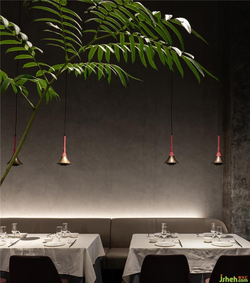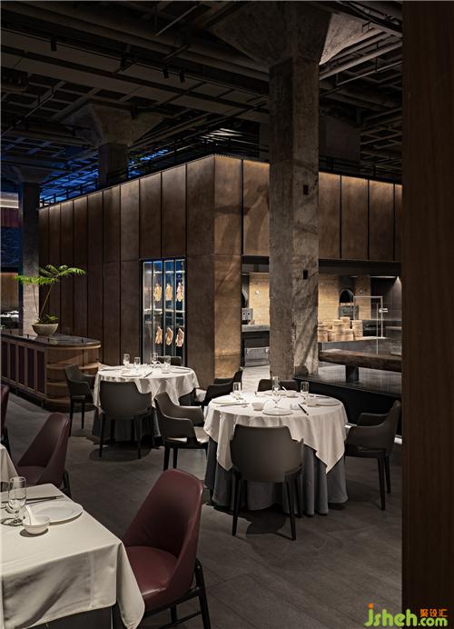 柱网间距5.6米35根立柱撑起原建筑空间,单层净空高度达到5.8米。规整空间、良好通风和卫生条件是原建筑的天然优势,北京餐饮设计巨大的四角柱帽与蜂窝屋面成为建筑内部的强符号特征。与此同时,新餐饮空间对坪效提升的需求也不得不被纳入设计考量。
