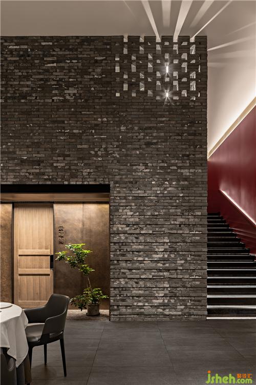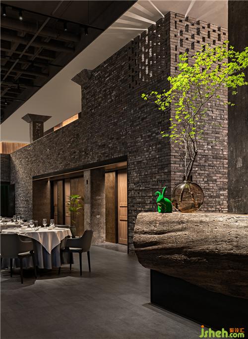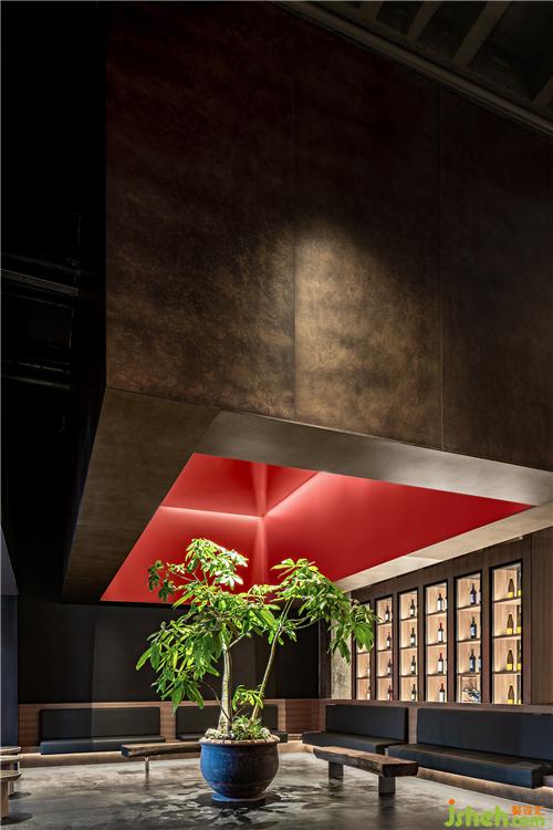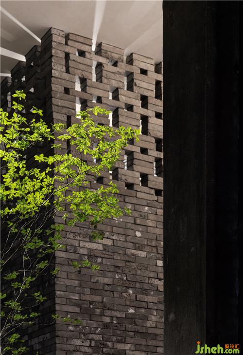 | 四角柱帽与蜂窝屋面是建筑内部的强符号特征