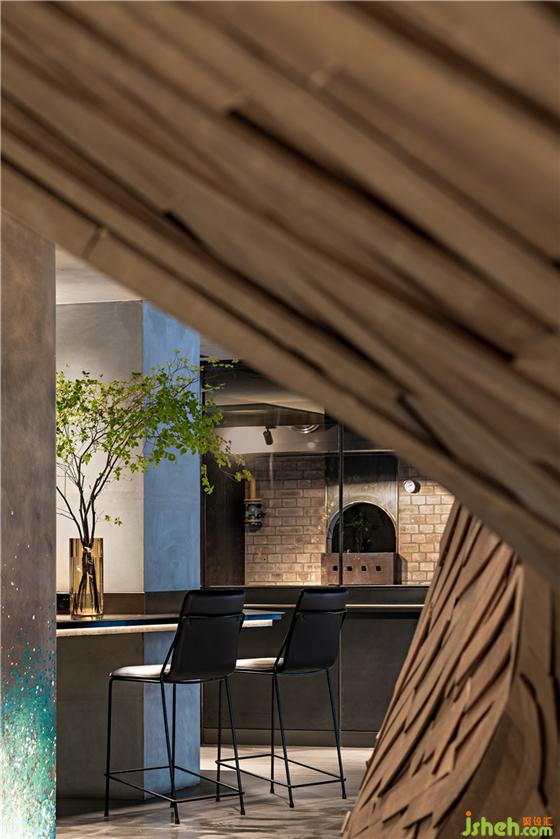 一层等候区迎来巨大的“手工雕塑”——这座表面完全在施工现场由木条随意拼接而成的楼梯将视线引领向二层空间。北京餐厅设计无数材料单体共同形成了迂回向上的路径,“逆流而上”的粗矿力量裹挟十足的动感,向所有步入其中的人宣告空间的独立与唯一性。