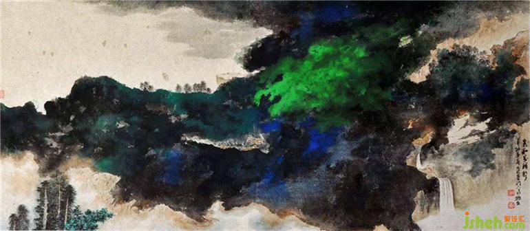 ▲张大千泼彩技艺画作