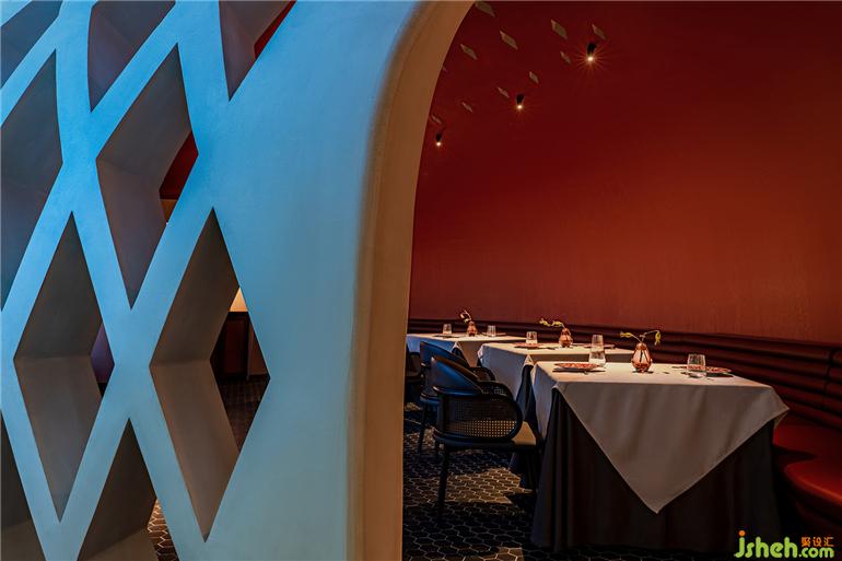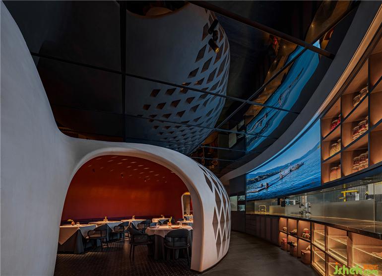 曾经在一人指尖的竹篾编织转化为钢筋水泥的巨型构建,坚硬沉重的现代材料被巧妙地轻轻放下——时间已飞逝,餐厅设计而烟火气与匠人之心永续。