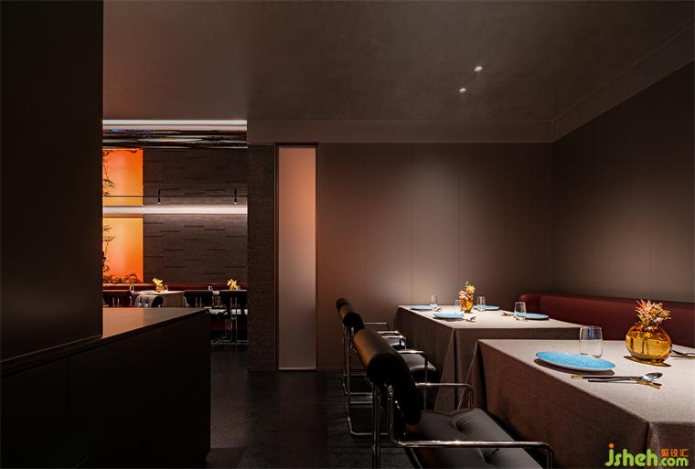 在萬蔚,固守的是滋味,憧憬的则是鲜活的城市生活——于是,热力和冷峻、激情和严整、光滑与粗粝、当代与过去都以空间为支点平衡交融着,餐厅设计空间不断抛出疑问又自行给出答案,故事性是空间暗含的设计脉络。