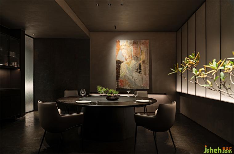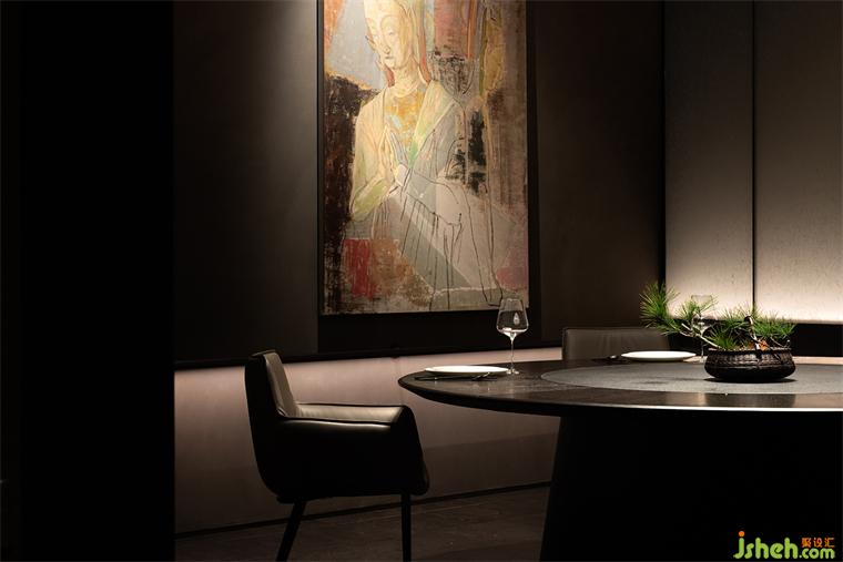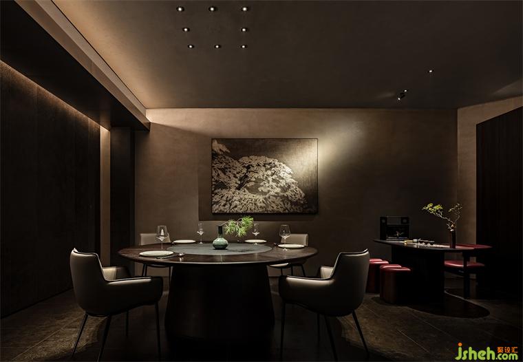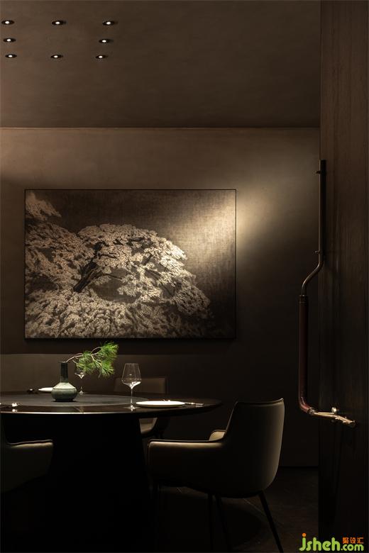 吧台、茶台等区域构建出微景别的自然,北方冷空气里的苍劲生机与文人书房的微缩园林皆有呈现,这些自然的虚构空间将食客的意识推出城市、推向自然。它们留白的想象空间比极尽还原的山水更贴近臻选店深远含蓄的价值传达。