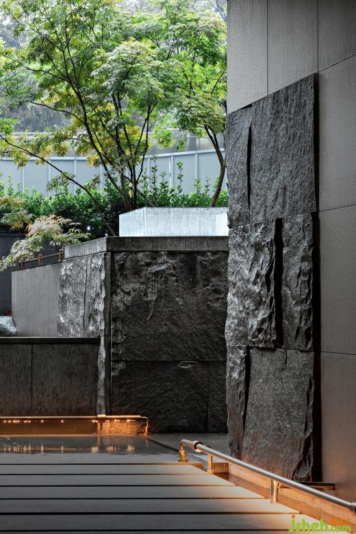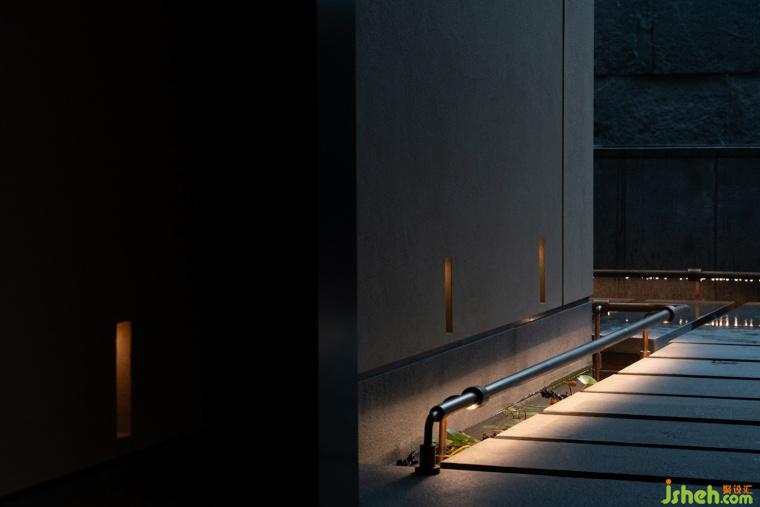 湾谷科技园下场广场内,即山语享有158㎡的室外庭院,茶室设计利用垂直方向丰富细腻的高度差,使庭院与室内亦形成了亭台、湖岛的意象关系,隐匿与逡巡漫游随之发生,庭院景致则随着漫游不断叠错掩映——水边有岸,岸上有石,石隐于竹,竹掩山墙......设计巧妙隐去人们对边界的感知,想象和意境并不囿于既有的尺度。