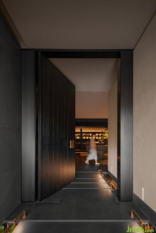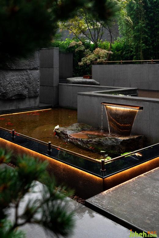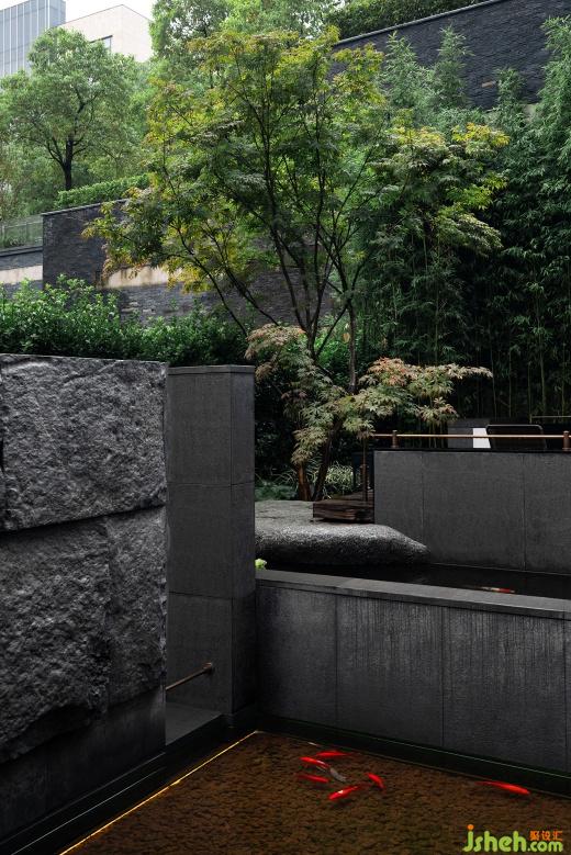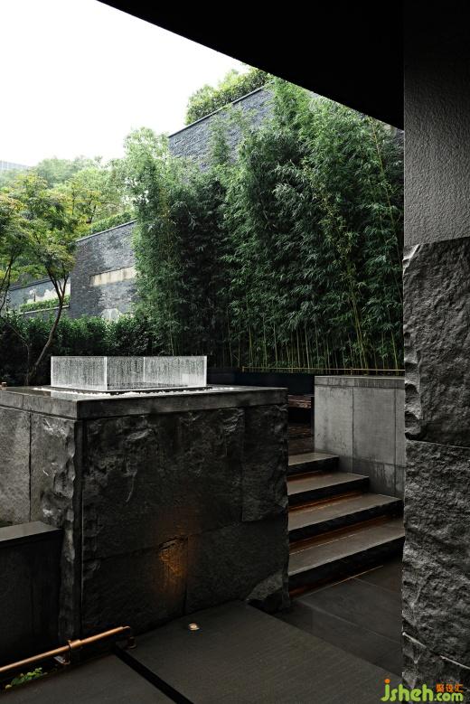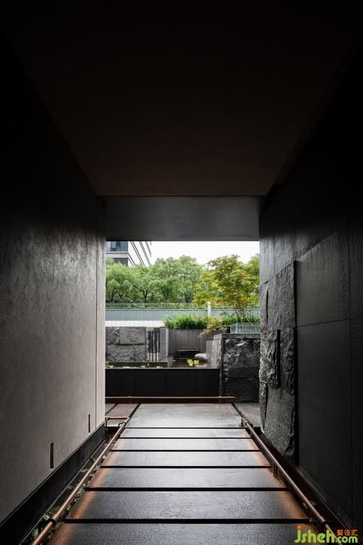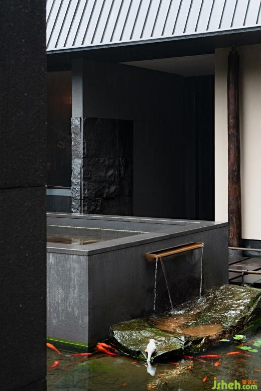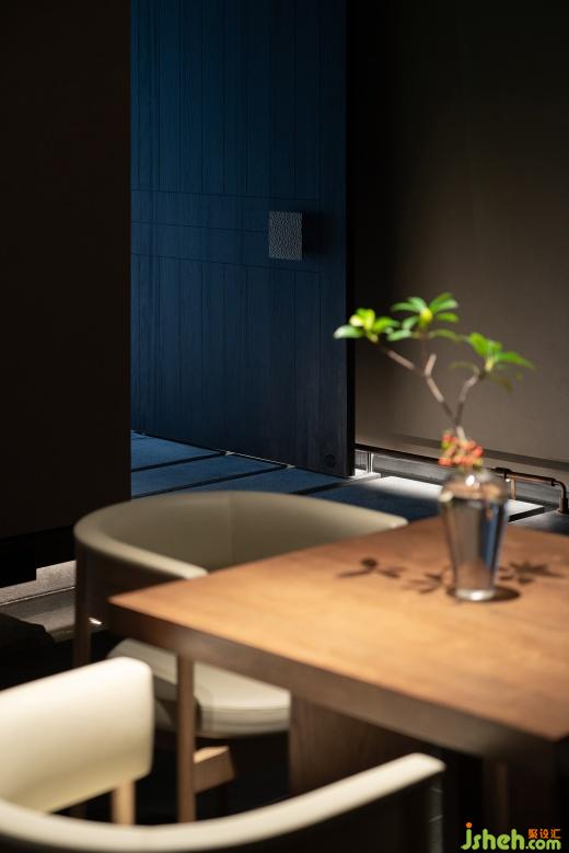 客人由东侧门经庭院进入餐厅,拾级而上,经踏步、浮桥、池水、组石、竹林,庭院时而强有力,时而静谧、潇洒、寂寂,皆随游园者心境的变化而变化,并无定式,游园此时是茶事悠长婉转的序言。
