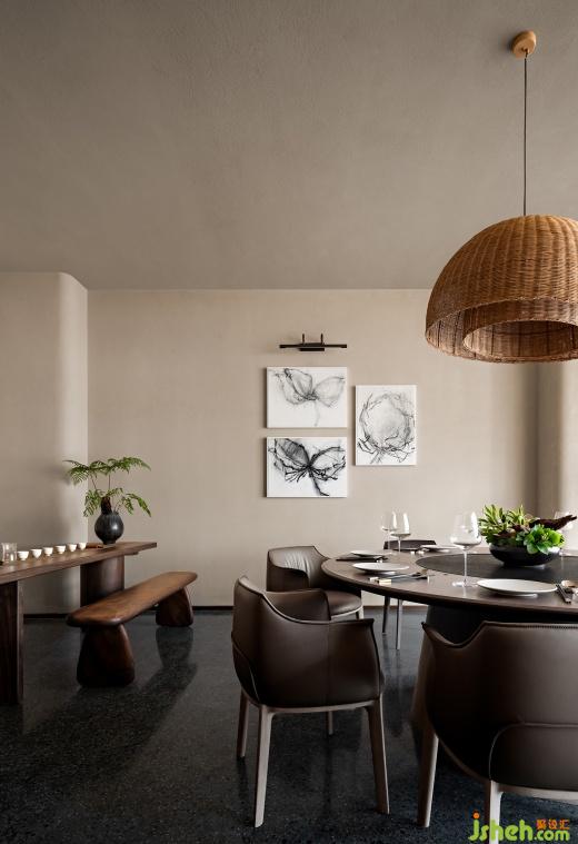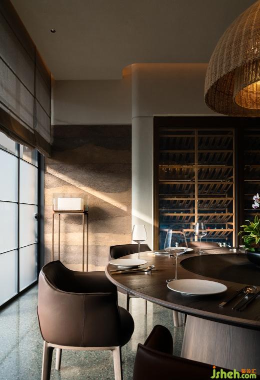 餐厅设计包房内,透光布帘隔出一个乡土气息十足的私密空间,水磨石、实木与肌理漆巧妙的使当代感沉淀在底部,舒适耐用的桌椅餐具、丰富的窖藏、茶台等大大拓宽了就餐人群和就餐属性。