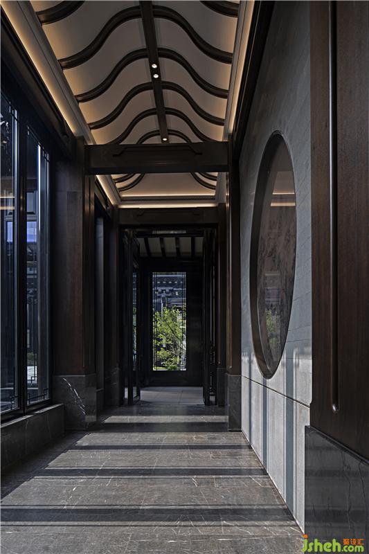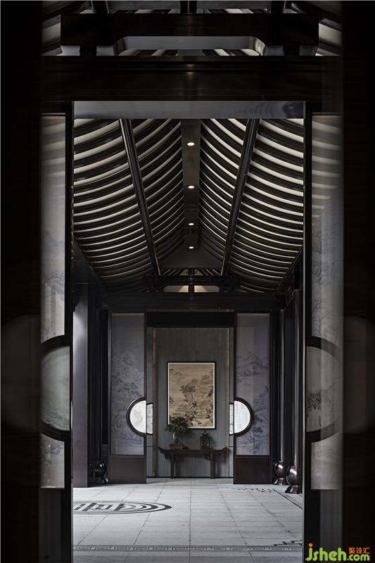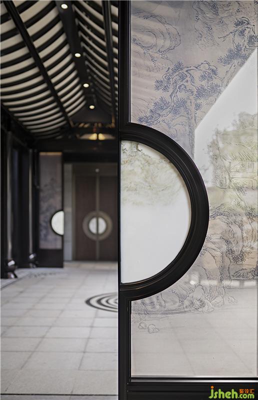 撇山居国画为影壁,端景为缀色,道园氤氲。在移步易景中,以庸正端雅的基调,铺陈东方礼序之曲。