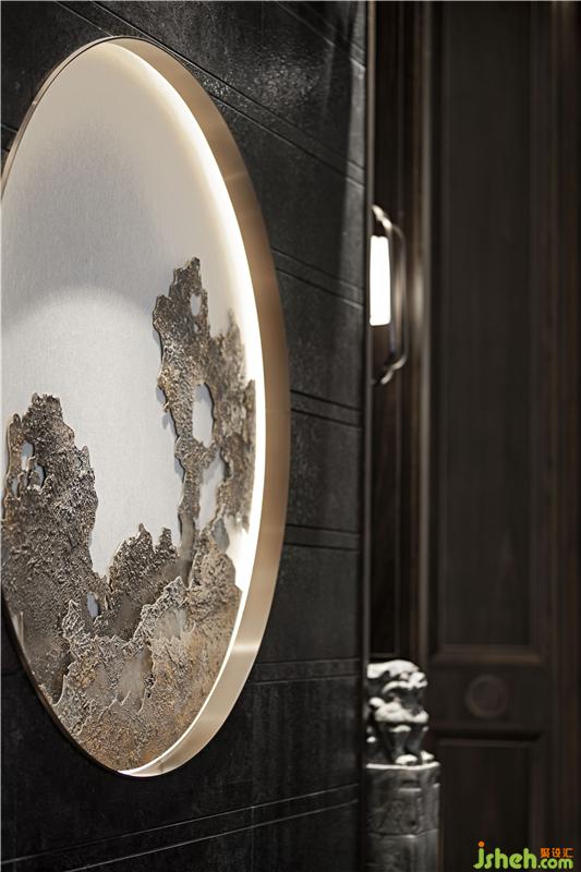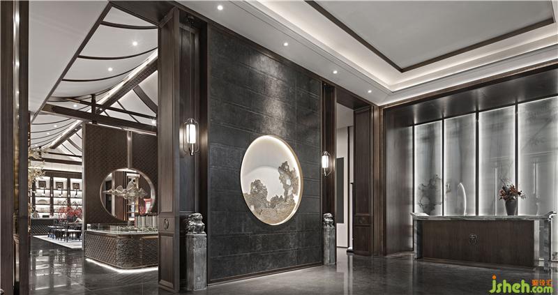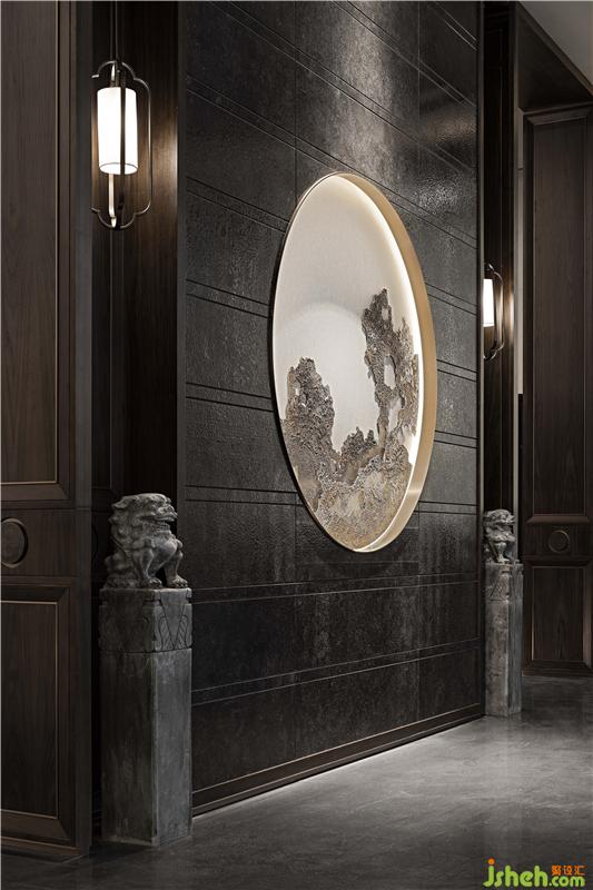 庄严古朴的拴马柱将敦肃礼序之感注入前厅空间,仕家门庭华表之仪复又在目,与山水小卷间的雅士文趣遥相对应。售楼处设计