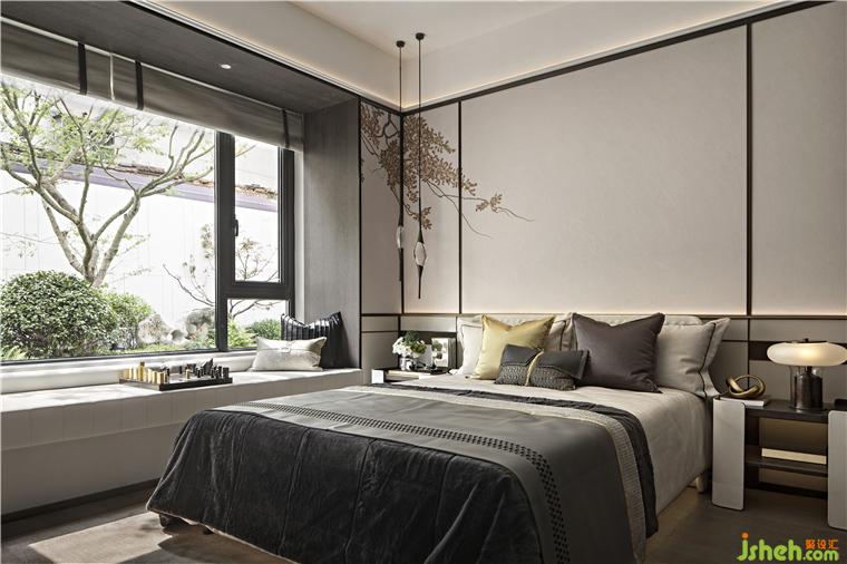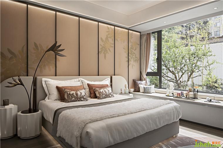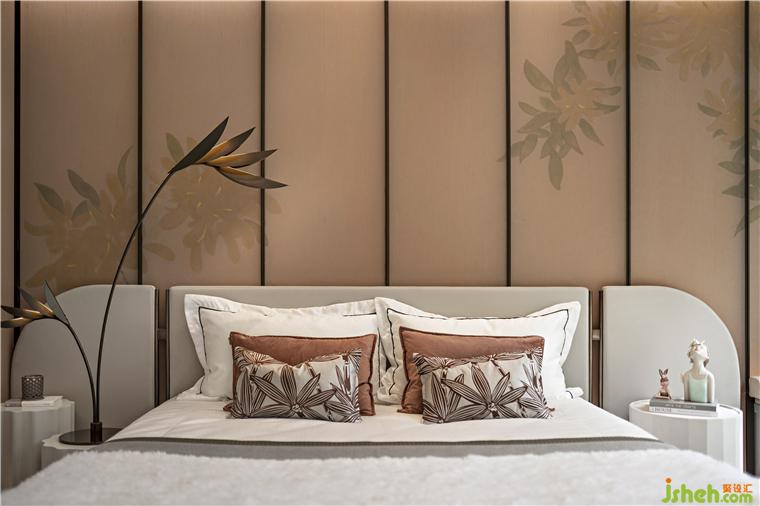 次卧空间简洁雅致,意蕴盎然,更是传递出现代东方的灵气之美。长沙建发养云样板房设计摒弃了繁杂的修饰与约束,打造温润儒雅的酣眠空间。