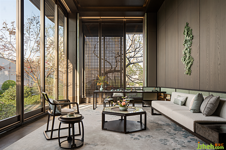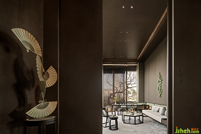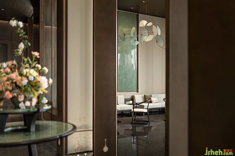 曲径通幽,作别喧嚣,VIP室内墙面装饰由金陵剪纸艺术演变而来,营销中心设计采用当代手法及新型材料进行演绎,又贴合金陵剪纸粗中有细,拙中见灵的艺术形式,连绵不断,藏古韵今。金陵意境与宋人雅致的生活情趣,在盘石设计的笔下被描绘得栩栩如生。