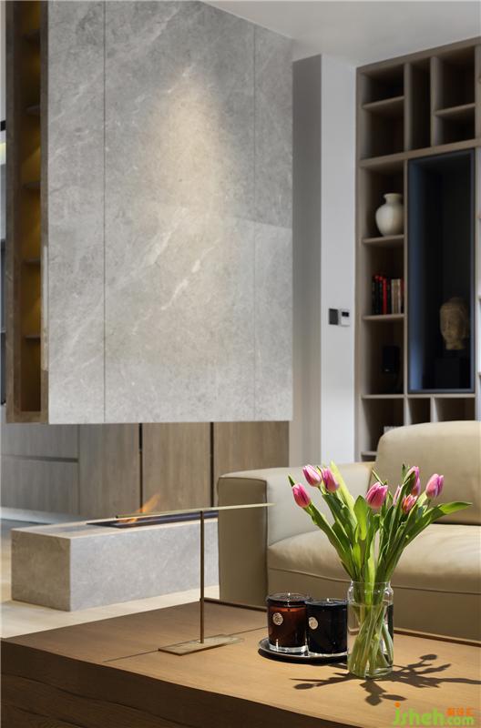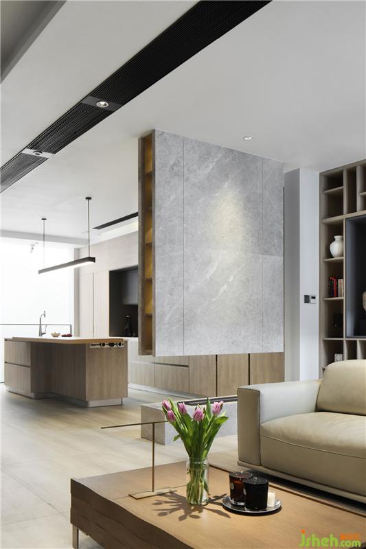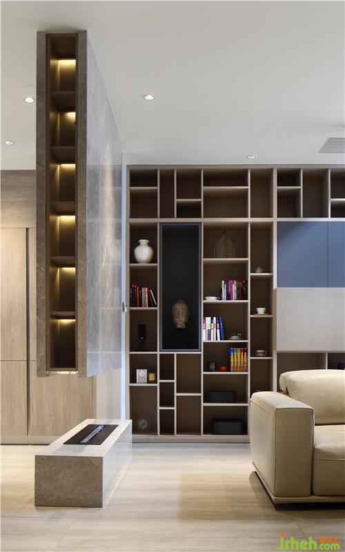整墙的开放格空间利用率达到极致时尚实用整个客厅中的家具线条都很流畅。别墅装饰