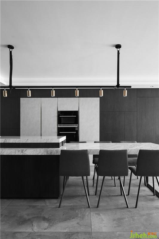 为了消除空间层层阻隔,重新做了空间划分,客、餐厅走廊最大化的让人的视线得到延伸,让整个空间更加自由,地面的水泥色瓷砖和灰色的墙面、白色的顶面莫名带着一股酷劲。室内设计师