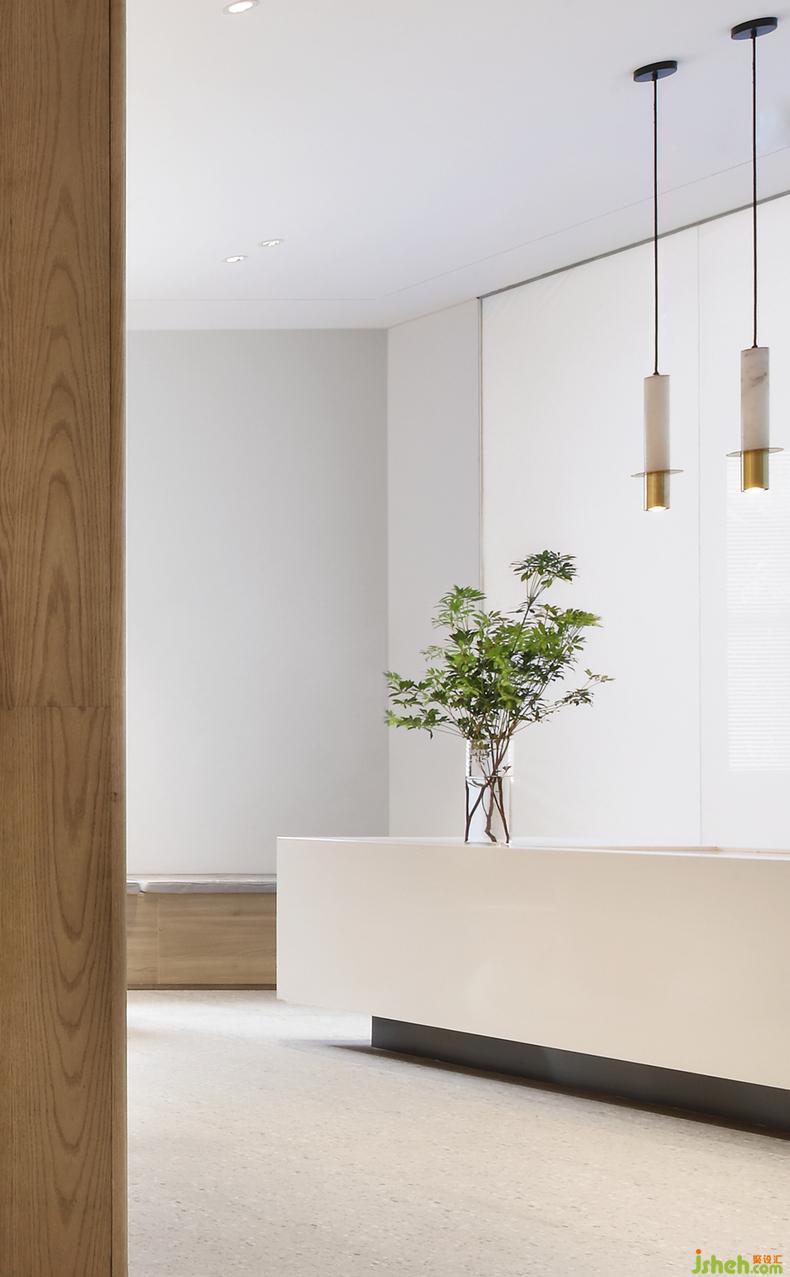 阳光透过百叶窗造访空间,轻柔静谧,在窗边坐卧一时,心情舒畅,办公室设计自然又清爽。品牌希冀传达的专业性、自然呼吸感,在入户的此时便润物无声地植入到了人的感官之中