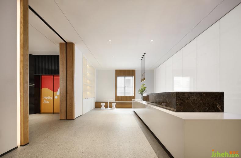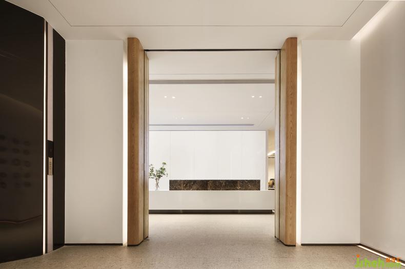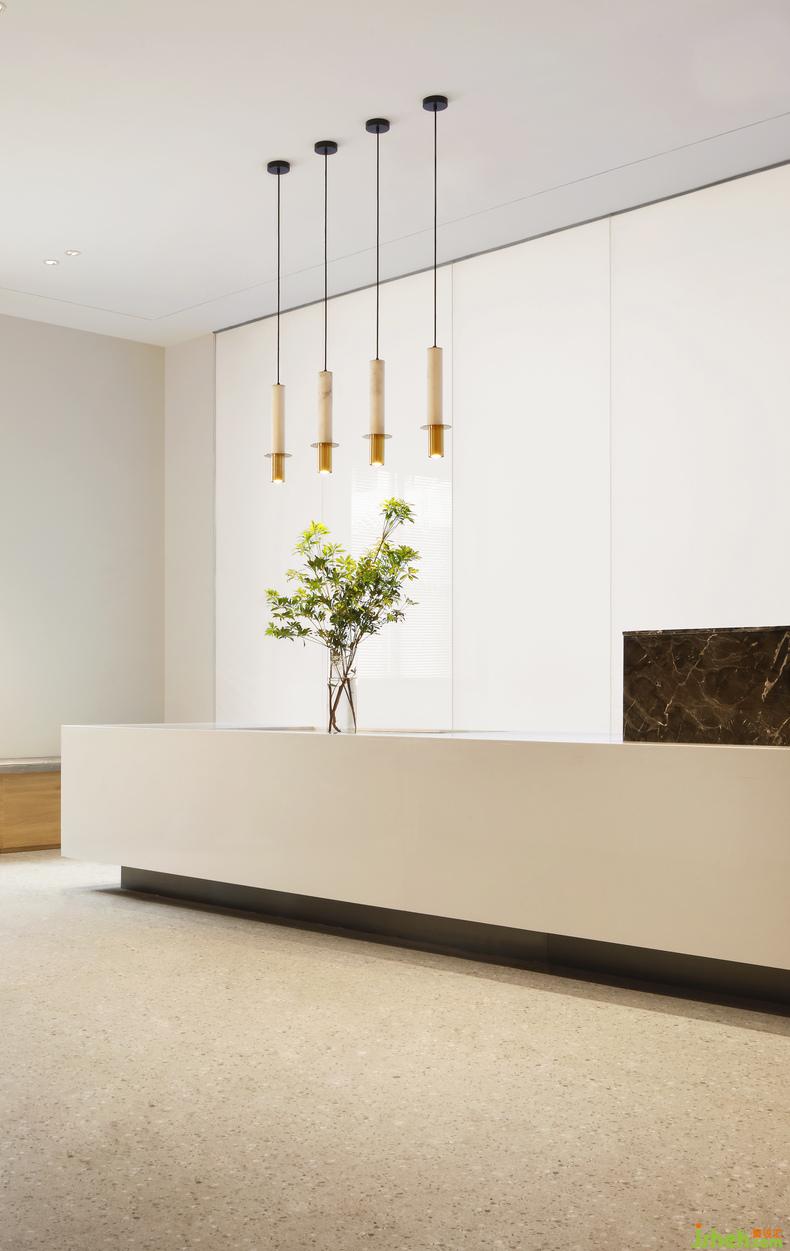 从情绪的感知,往往是设计师探索与思考的核心。办公室设计接待台可谓是品牌核心门面,第一印象的重要性无需赘述,设计师在此做了改头换面式的翻新改造。