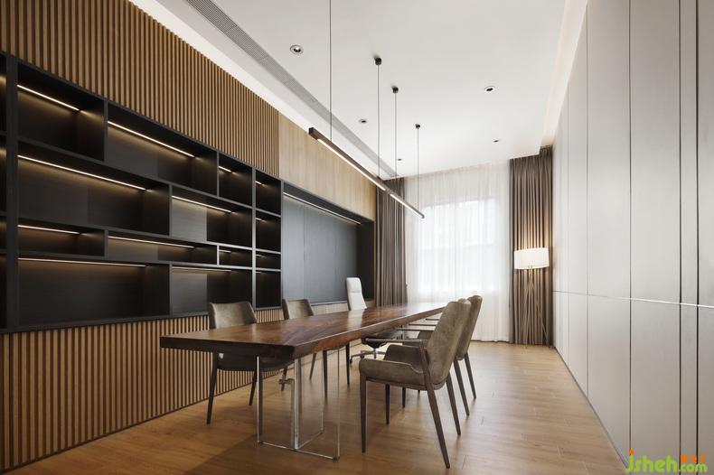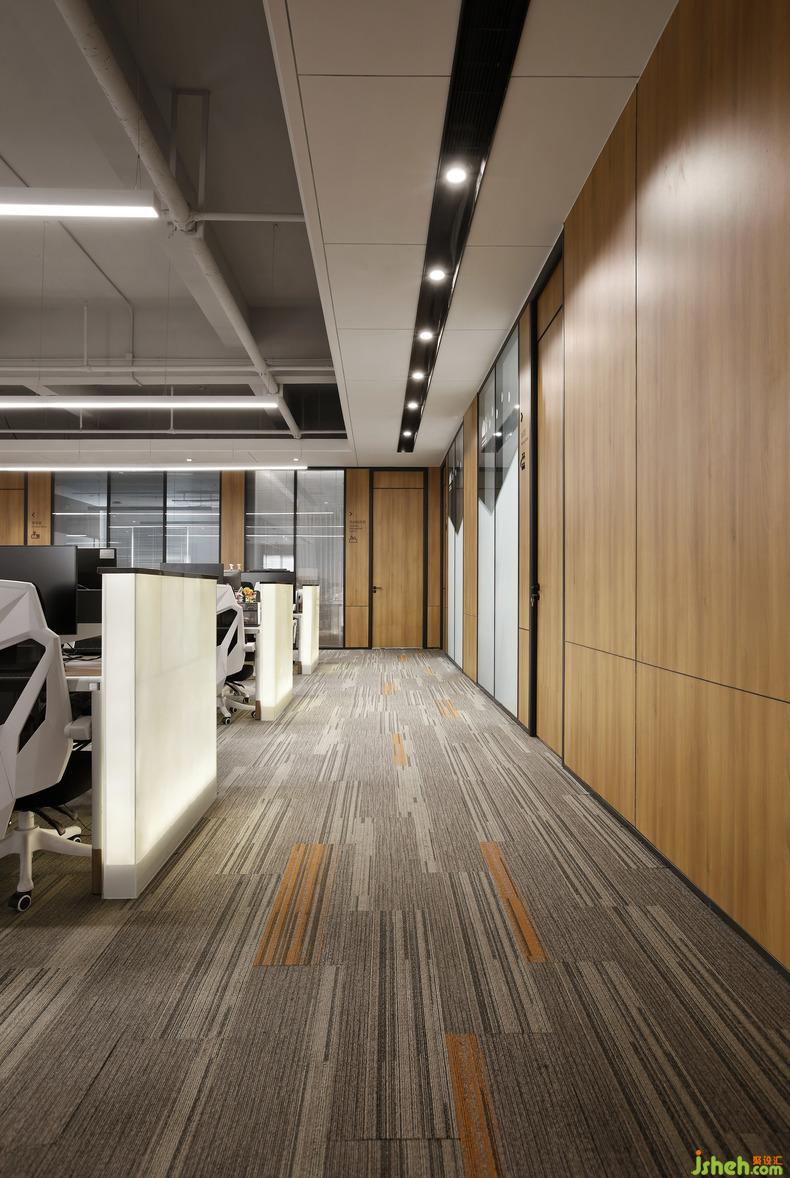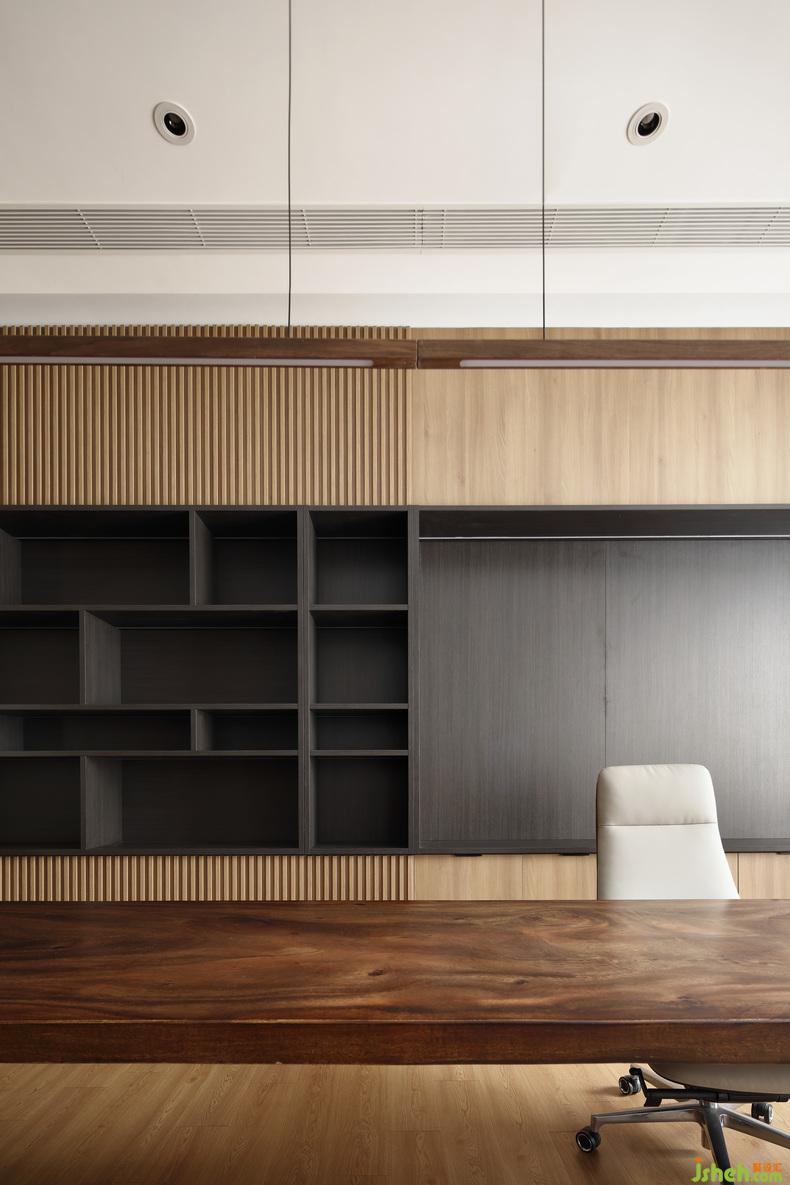 在秩序井然的理性之中注入饱含人文关怀的感性元素,在基本的物理功能满足之外创造接近自然的精神需求,现代办公空间总是在理性与感性、物质与精神等多重相对矛盾中实现平衡。原木无疑是材料施予空间的魔法,办公室设计棕色具有包容、中和的完美效果,清浅与深暗相互映衬,给人无穷的想象空间