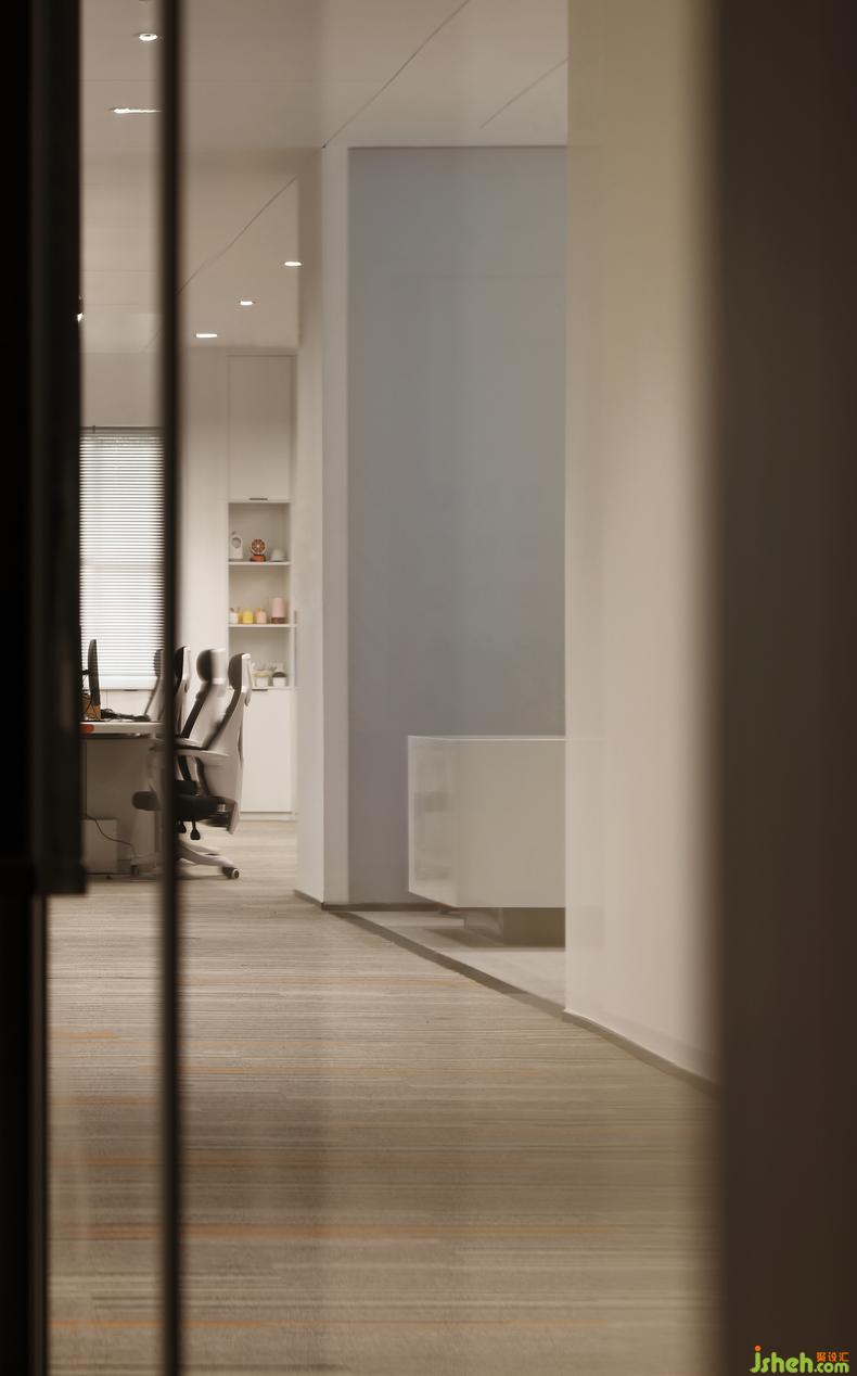 整个办公空间皆以原木色为主色调,从前厅接待厅的浅棕点缀,办公室设计到公共办公区深棕色的墙面柜面,凸显专业与冷静的同时不失心理关怀的温度