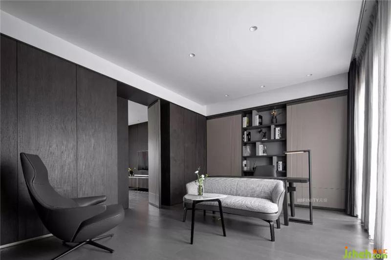 主卧的起居厅同时兼顾了书房和休息起居两种功能。