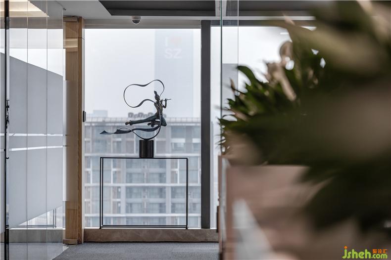 全景落地窗前的神女飞天像不仅是一种文化的艺术形象,办公室设计更是代表了婀娜多姿女性柔美的形象,不断地给人们以启迪和美的享受。