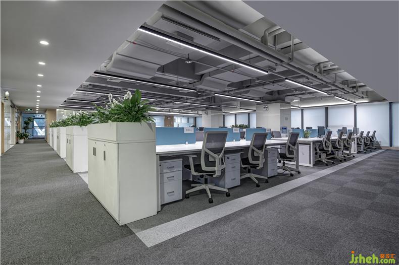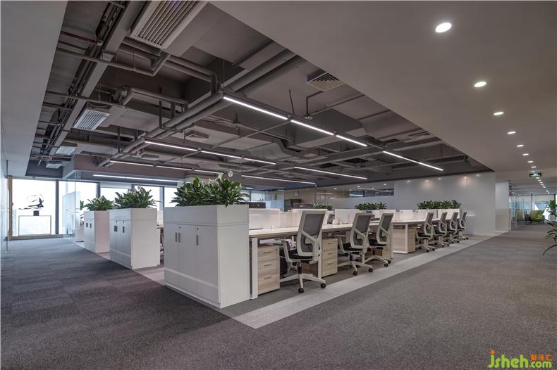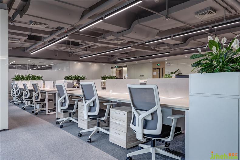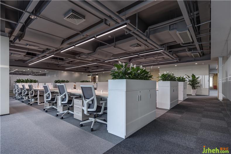 办公区域栽有大量绿植学名白掌,叶片翠绿,花形酷似鹤翘首,办公室设计亭亭玉立,洁白无瑕,被称为“清白之花”更是贴合可思美对“美”的一种追求