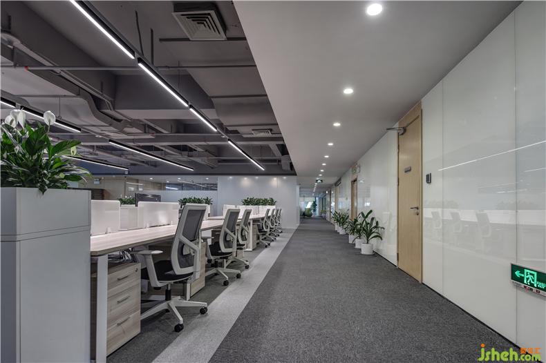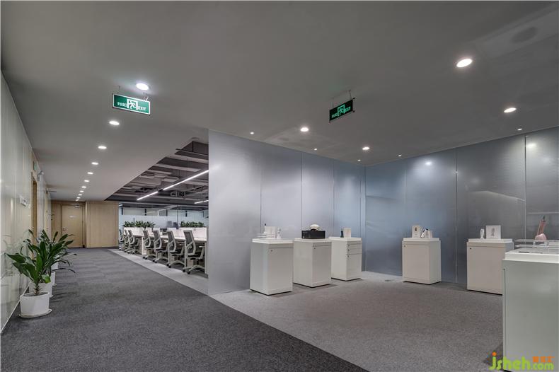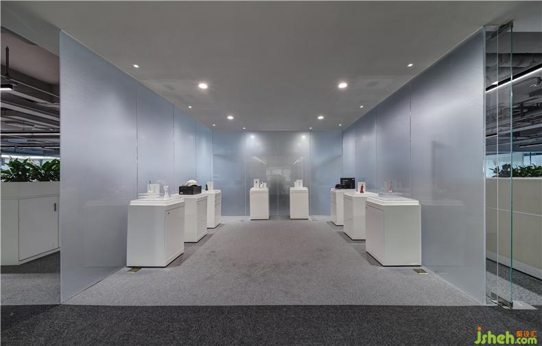 办公室内设置了一个展厅的区域里面陈列着可思美的美容产品,让品牌与消费者有更深层连接办公室设计