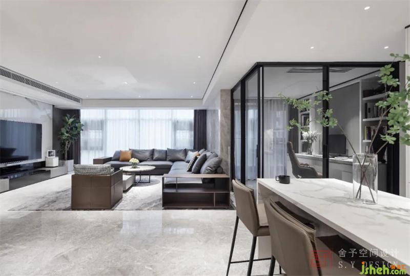 主要材料 | 大理石、实木板、免漆天然饰面板、黑钛钢条 、艺术涂料、舍予全屋定制
