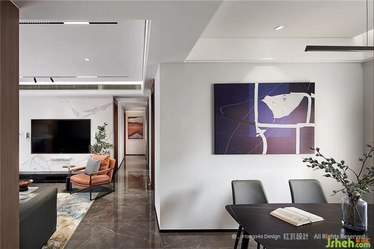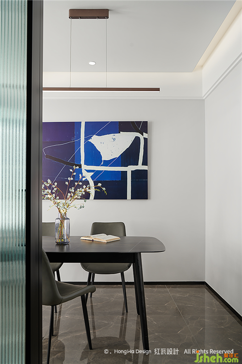 卫生间做了干湿分离,方便清洁且具有更高的安全保障,长条形的防雾镜面增强通透感,洗漱台下方设置了多个收纳抽屉,很好的保持空间完整与简洁性,考虑到屋主爱阅读的习惯,我们在这里做了内嵌壁刊设计,方便置物需要