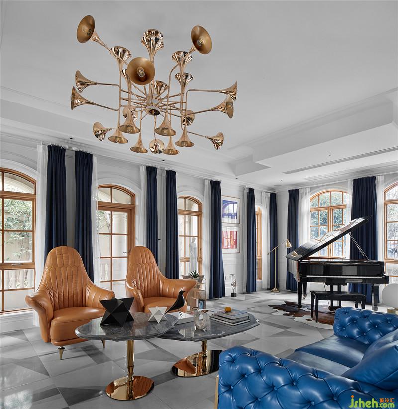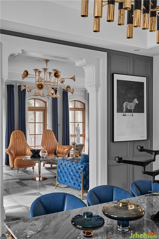 设计者认为良善的设计以人性关怀为基础,潜移默化地改变着我们日常生活与生活方式,追寻超然意趣,畅快淋漓地,愉悦我们的感官,也愉悦我们的心情,通过审美的超越性救渡纠缠于世俗利害关系中的心灵,提升我们的品味。很多时候,需要引导的是一种生活方式和态度,而不是局限于某种风格…本案设计正是恰到好处的将这一理念体现的淋漓尽致。别墅坐落在素有东方威尼斯之称的江南古城绍兴,建筑一共四层(包括阁楼)客厅、餐厅、厨房等公共活动区设于一层,会客区娱乐区工作区在地下层,二层设三间卧室,三层即为主卧套房衣帽间,附带中导台。700平方米的居住空间功能设置齐备,为了呈现更为年轻化的配置,使其生活方式和形态也都更趋向于现代感,空间感受上格外注重通透、自然、舒适、方便。为此,一层将客餐厅、西厨房打通,融为一体,只是通过对称的门洞作为空间分割的界定。地下室活动空间,定位为轻工业风格,开放式书房与会客区吧台健身区融为一体,形成一个更欢乐的娱乐空间,而相对独立又有关联的影音室增加了一定的私密性和保证享受影音过程的品质。