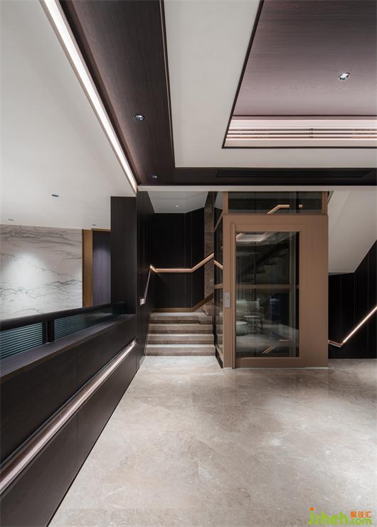 别墅装修设计根据空间具体尺寸,定制自带一体化井道带轿厢式别墅电梯,还可以定制个性化变幻背景墙,让电梯体验更上一层楼。