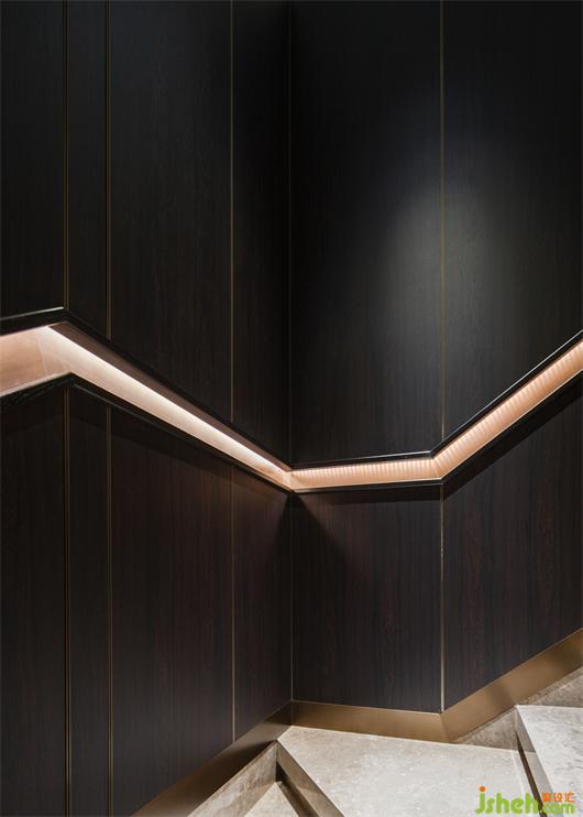 别墅装修设计本次墙板由蓝谷品牌合作商完成,墙板进行分断安装,地面踢脚线由不锈钢定制完成;墙面套框造型部分及灯带处造型现场制作基础,收口由不锈钢折边——电镀完成。