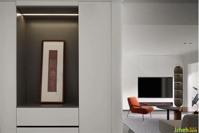 A painting and calligraphy is the main character, and the seal script ink treasure of Mr. Wang Bo, a leading figure in Chinese seal script calligraphy, adds a unique Oriental temperament to the space. Because of the Oriental temperament, we once again put the space texture to the blank freehand thinking, make the space more interesting.