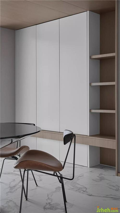 Male owner pays attention to the home environment safety very much.To avoid screaming tables and create a safe space for children to play in the dining room, we designed round tables in the clean dining area.The introduction of natural light through large area north balcony, let owner and children enjoy life in the space.