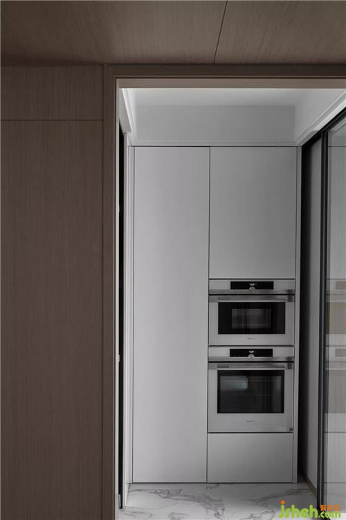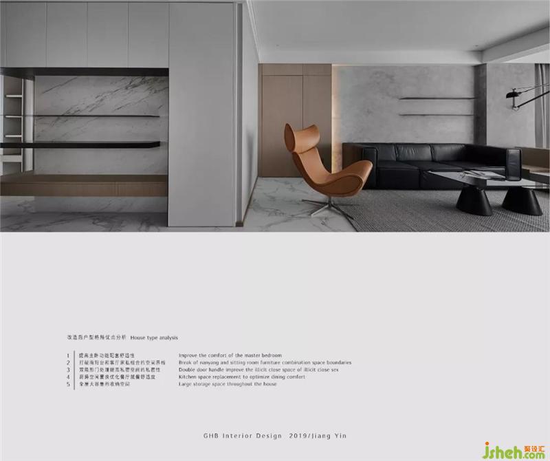 We flatted the facade of the TV background wall and extended the material to maximize the visual sense of space.The cement coating of sofa setting wall presents the sense of manual grain and temperature.We use a large number of warm color department, neutralized the color of the space.We use the material such as stone material, wood grain, art coating, through the big glass window, by the change of light and shadow, create a stable and elegant living atmosphere.